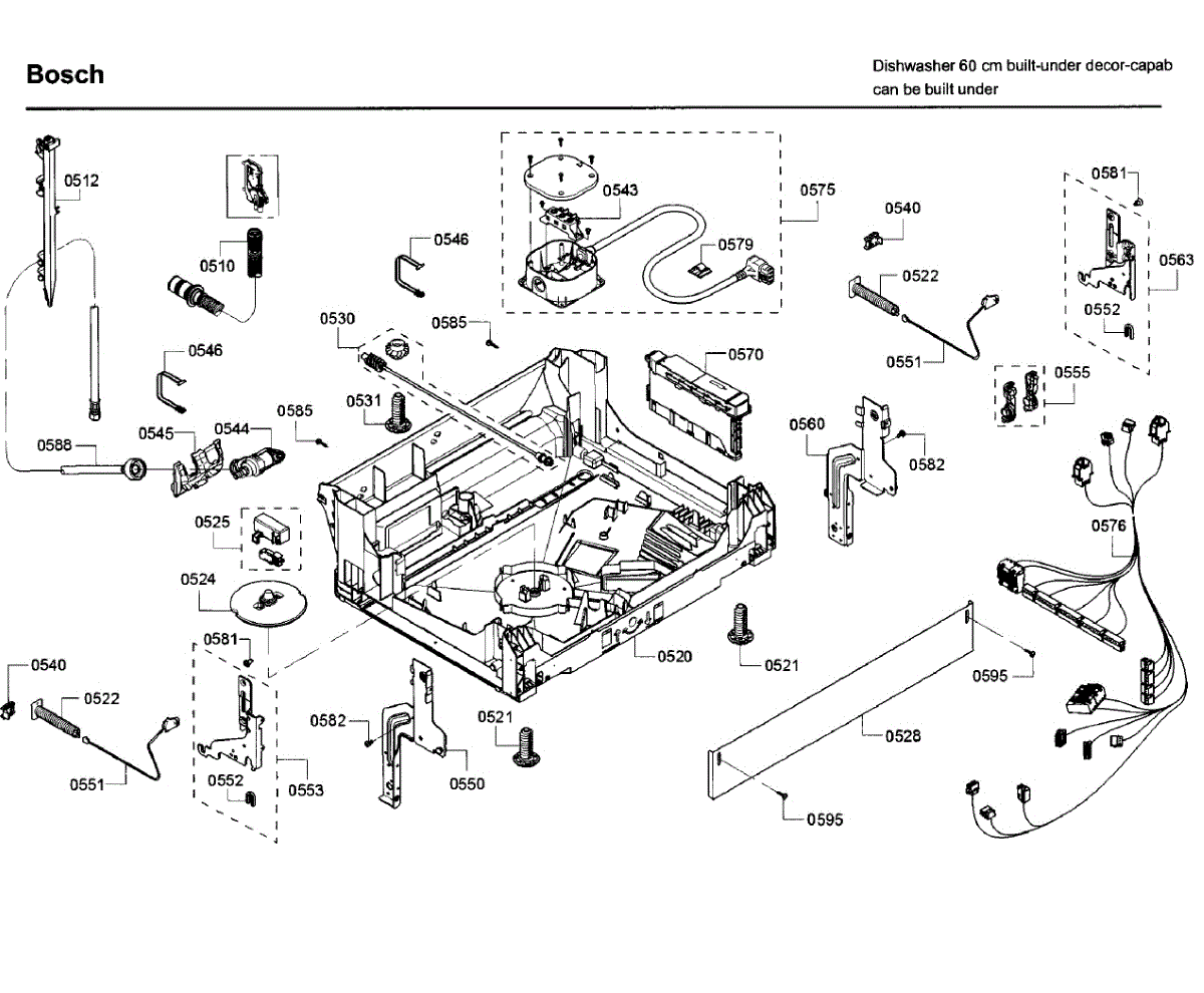 Cable harness for dishwasher base wiring system. Connects pump, controls, and electrical components. Replace if damaged by rodents or frayed wires.