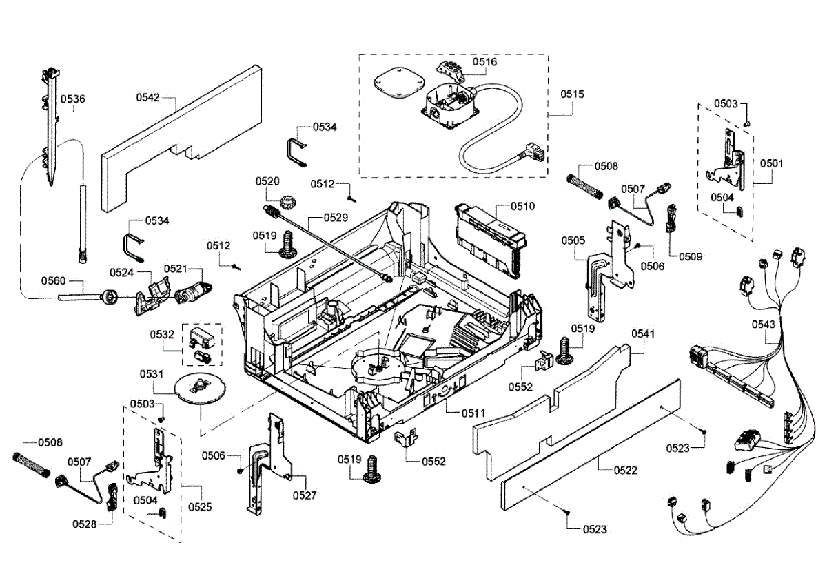 Lower housing shell that forms the base of your dishwasher and supports internal components. Replace if cracked, damaged, or broken to restore structural fit.