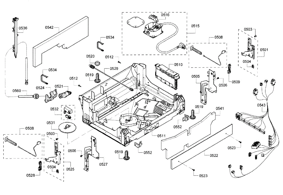 Lower housing shell that forms the base of your dishwasher and supports internal components. Replace if cracked, damaged, or broken to restore structural fit.
