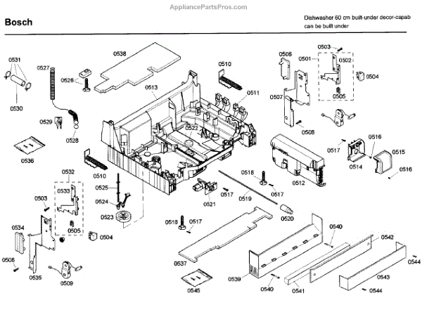 The Junction Box Cover is an OEM part for Bosch dishwashers. Located at the rear of the appliance, the junction box houses connections to the power supply and control board wiring. The junction box cover protects these internal electronic parts.