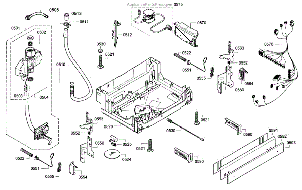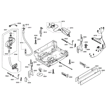 Lower housing that protects and supports internal components at the dishwasher base. Replace if cracked, broken, or missing to restore enclosure integrity.