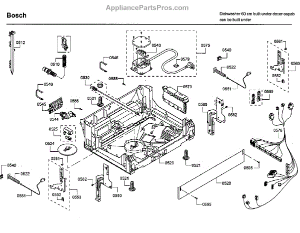 The Base Panel is an OEM part for Bosch dishwashers. It forms the floor structure inside the dishwasher tub on which racks and components sit. Symptoms of a problematic base panel include: