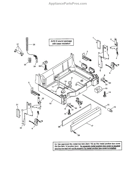 Causes of a failed screw can include wear and deterioration from constant vibrations during cycles, or physical damage if the toe kick panel is impacted.