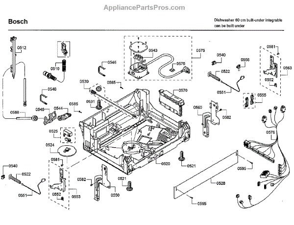 The Power Cord is an OEM replacement part for Bosch dishwashers. It supplies electrical current that allows the dishwasher to properly perform cycles. Located at the rear of the appliance, it plugs into a standard three-prong outlet. Causes for power cord replacement include cracking, splitting, or breaks in the protective insulation over time from repeated bending and stress. Symptoms of a faulty power cord include: