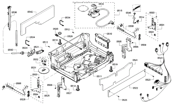 The Base Panel is an OEM part for Bosch dishwashers. It forms the floor structure inside the dishwasher tub on which racks and components sit. Symptoms of a problematic base panel include: