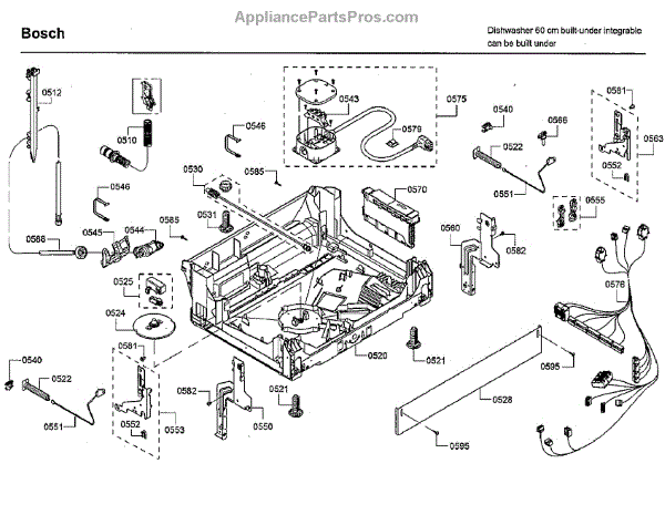 The Base Panel is an OEM part for Bosch dishwashers. It forms the floor structure inside the dishwasher tub on which racks and components sit. Symptoms of a problematic base panel include: