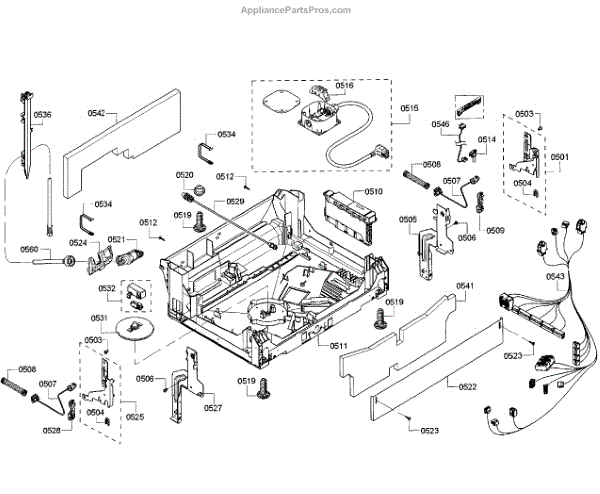 The Base Panel is an OEM part for Bosch dishwashers. It forms the floor structure inside the dishwasher tub on which racks and components sit. Symptoms of a problematic base panel include: