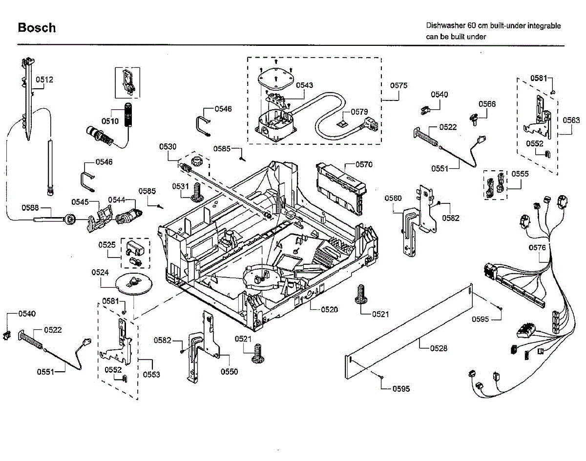 Cable harness for dishwasher base wiring system. Connects pump, controls, and electrical components. Replace if damaged by rodents or frayed wires.
