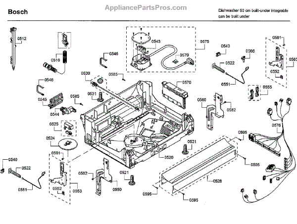 The Power Cord is an OEM replacement part for Bosch dishwashers. It supplies electrical current that allows the dishwasher to properly perform cycles. Located at the rear of the appliance, it plugs into a standard three-prong outlet. Causes for power cord replacement include cracking, splitting, or breaks in the protective insulation over time from repeated bending and stress. Symptoms of a faulty power cord include: