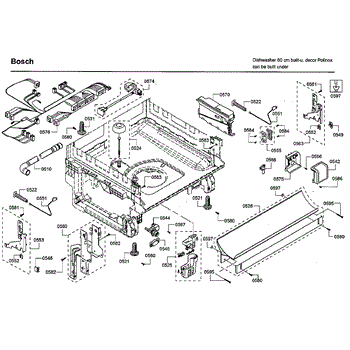 The Junction Box Cover is an OEM part for Bosch dishwashers. Located at the rear of the appliance, the junction box houses connections to the power supply and control board wiring. The junction box cover protects these internal electronic parts.