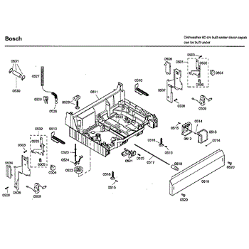The Base Panel is an OEM part for Bosch dishwashers. It serves as a protective cover for the bottom of the dishwasher, shielding internal components from debris, moisture, and damage while also contributing to the appliance's structural stability.