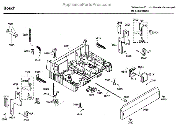 The Base Panel is an OEM part for Bosch dishwashers. It serves as a protective cover for the bottom of the dishwasher, shielding internal components from debris, moisture, and damage while also contributing to the appliance's structural stability.