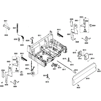 The Base Panel is an OEM part for Bosch dishwashers. It serves as a protective cover for the bottom of the dishwasher, shielding internal components from debris, moisture, and damage while also contributing to the appliance's structural stability.