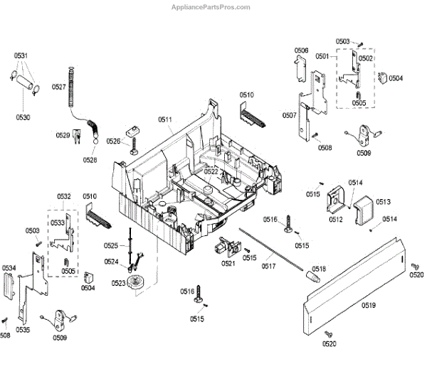 The Base Panel is an OEM part for Bosch dishwashers. It serves as a protective cover for the bottom of the dishwasher, shielding internal components from debris, moisture, and damage while also contributing to the appliance's structural stability.