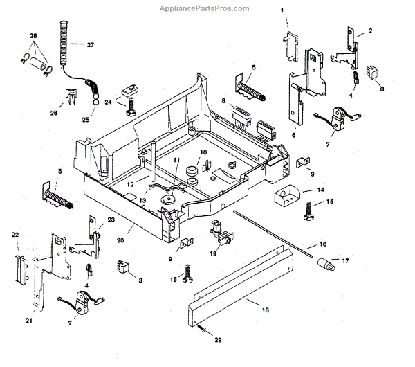 • Transfers movement from the tub float to the float switch so the machine senses water level correctly