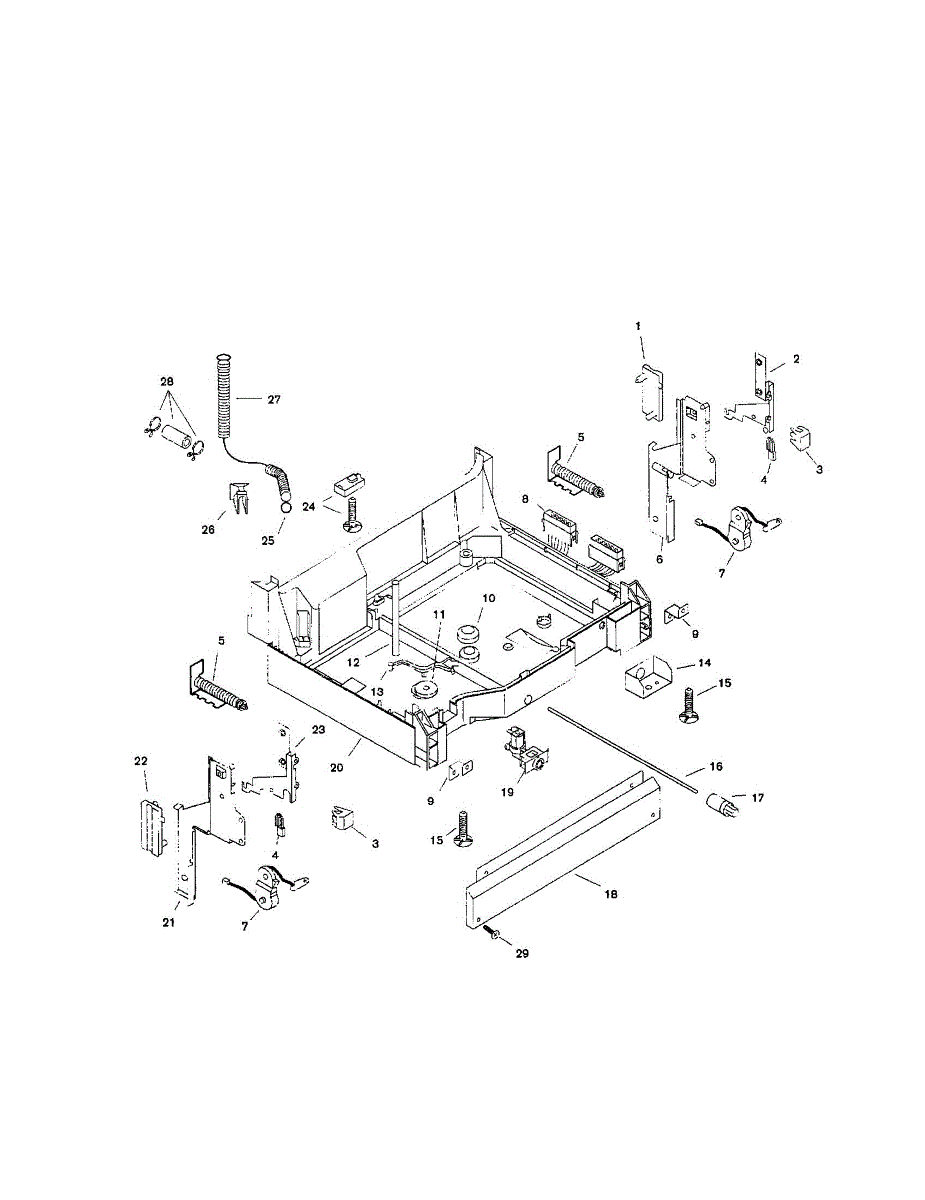Metal mounting bracket that secures the toe kick panel to the bottom of your dishwasher. Replace if bent, broken, or missing to properly attach panel.
