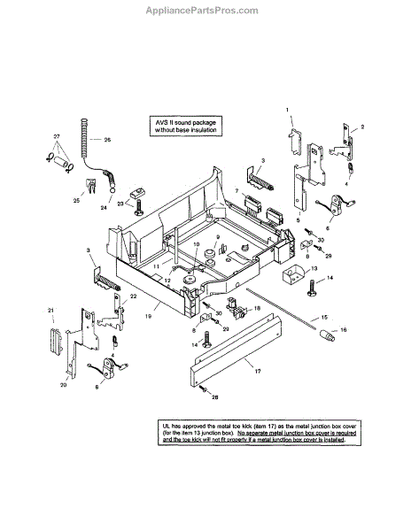 Causes of a failed screw can include wear and deterioration from constant vibrations during cycles, or physical damage if the toe kick panel is impacted.