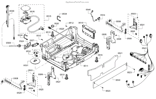 The Base Panel is an OEM part for Bosch dishwashers. It forms the floor structure inside the dishwasher tub on which racks and components sit. Symptoms of a problematic base panel include: