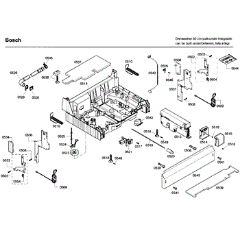 The Base Panel is an OEM part for Bosch dishwashers. It serves as a protective cover for the bottom of the dishwasher, shielding internal components from debris, moisture, and damage while also contributing to the appliance's structural stability.