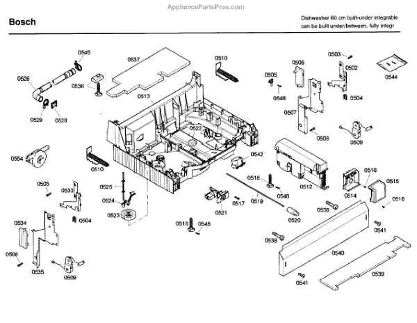 The Base Panel is an OEM part for Bosch dishwashers. It serves as a protective cover for the bottom of the dishwasher, shielding internal components from debris, moisture, and damage while also contributing to the appliance's structural stability.
