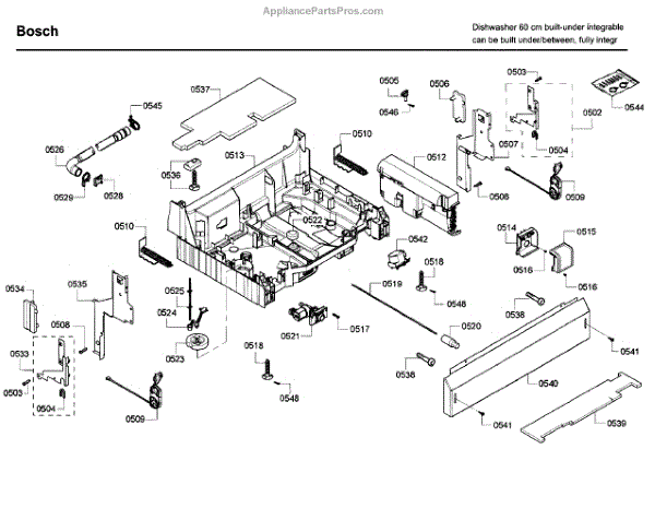 The Base Panel is an OEM part for Bosch dishwashers. It serves as a protective cover for the bottom of the dishwasher, shielding internal components from debris, moisture, and damage while also contributing to the appliance's structural stability.