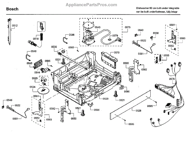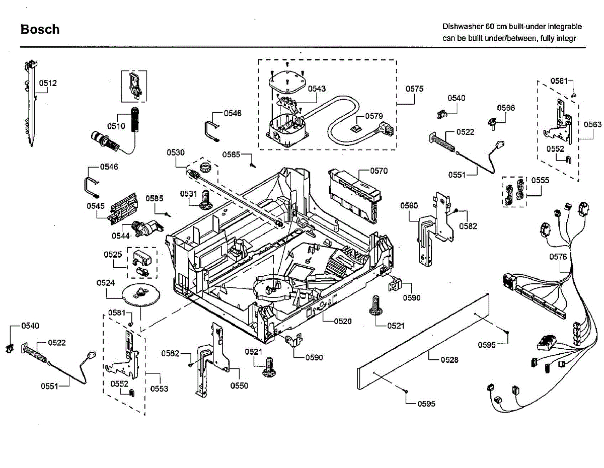 Cable harness for dishwasher base wiring system. Connects pump, controls, and electrical components. Replace if damaged by rodents or frayed wires.
