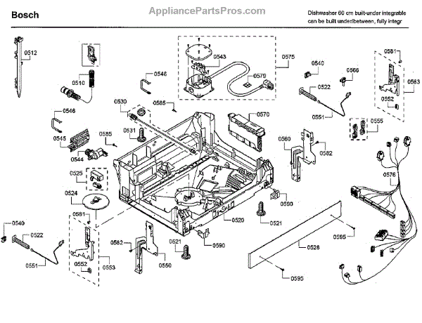The Power Cord is an OEM replacement part for Bosch dishwashers. It supplies electrical current that allows the dishwasher to properly perform cycles. Located at the rear of the appliance, it plugs into a standard three-prong outlet. Causes for power cord replacement include cracking, splitting, or breaks in the protective insulation over time from repeated bending and stress. Symptoms of a faulty power cord include: