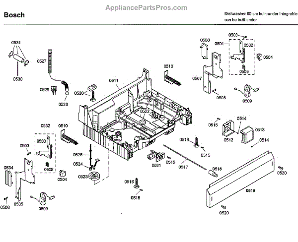 The Base Panel is an OEM part for Bosch dishwashers. It serves as a protective cover for the bottom of the dishwasher, shielding internal components from debris, moisture, and damage while also contributing to the appliance's structural stability.