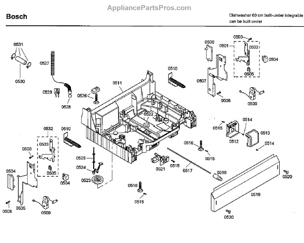 The Base Panel is an OEM part for Bosch dishwashers. It serves as a protective cover for the bottom of the dishwasher, shielding internal components from debris, moisture, and damage while also contributing to the appliance's structural stability.
