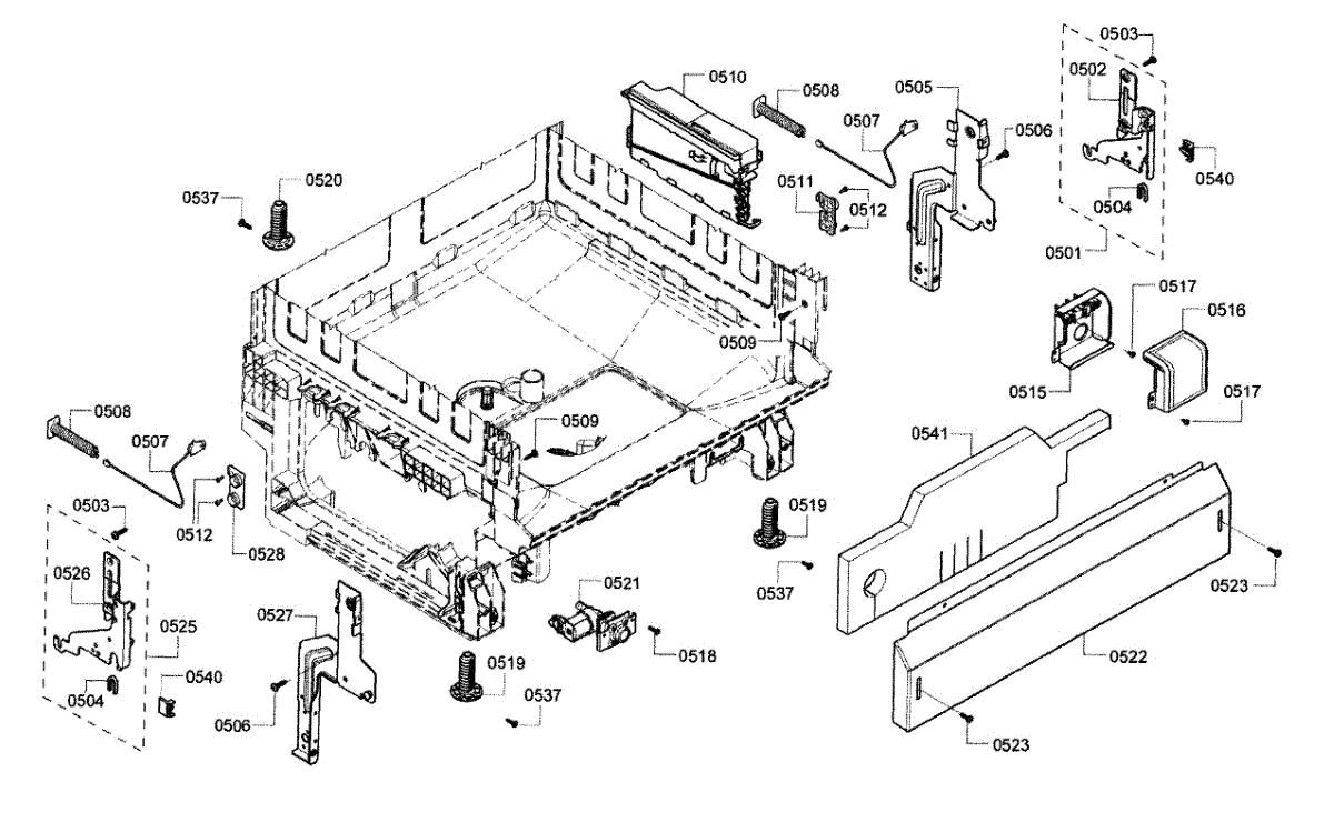 The Support is an OEM part for Bosch dishwashers. This part supports the door hinges, ensuring that the dishwasher door opens and closes smoothly and securely. The hinge support is vital for maintaining the alignment of the door, preventing stress on other components, and ensuring a proper seal during operation to avoid leaks.
