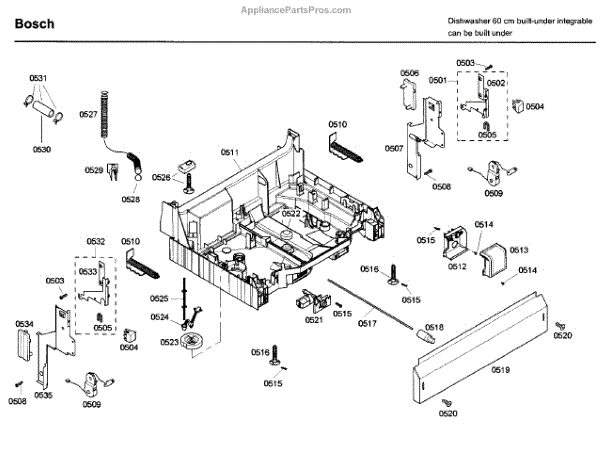 The Base Panel is an OEM part for Bosch dishwashers. It serves as a protective cover for the bottom of the dishwasher, shielding internal components from debris, moisture, and damage while also contributing to the appliance's structural stability.