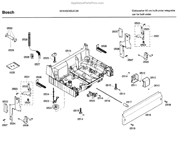 The Base Panel is an OEM part for Bosch dishwashers. It serves as a protective cover for the bottom of the dishwasher, shielding internal components from debris, moisture, and damage while also contributing to the appliance's structural stability.