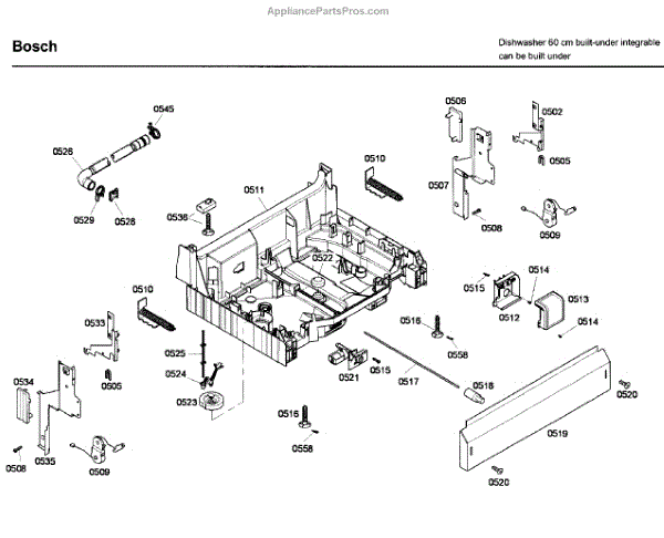 The Base Panel is an OEM part for Bosch dishwashers. It serves as a protective cover for the bottom of the dishwasher, shielding internal components from debris, moisture, and damage while also contributing to the appliance's structural stability.