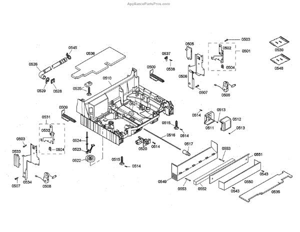 The Junction Box Cover is an OEM part for Bosch dishwashers. Located at the rear of the appliance, the junction box houses connections to the power supply and control board wiring. The junction box cover protects these internal electronic parts.