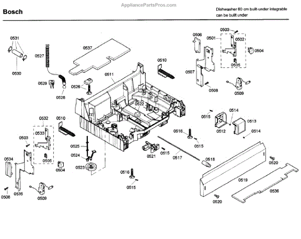 The Base Panel is an OEM part for Bosch dishwashers. It serves as a protective cover for the bottom of the dishwasher, shielding internal components from debris, moisture, and damage while also contributing to the appliance's structural stability.