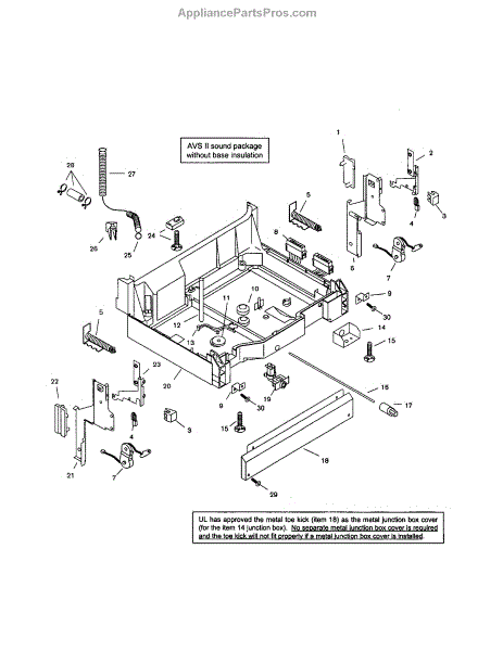 • Sagging or detachment of the toe kick panel from the dishwasher