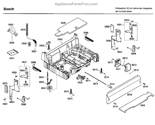 The Base Panel is an OEM part for Bosch dishwashers. It serves as a protective cover for the bottom of the dishwasher, shielding internal components from debris, moisture, and damage while also contributing to the appliance's structural stability.