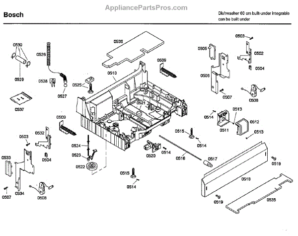 The Base Panel is an OEM part for Bosch dishwashers. It serves as a protective cover for the bottom of the dishwasher, shielding internal components from debris, moisture, and damage while also contributing to the appliance's structural stability.