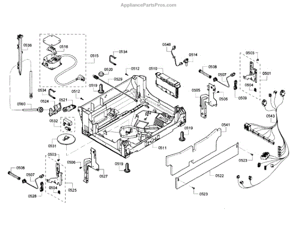 The Base Panel is an OEM part for Bosch dishwashers. It forms the floor structure inside the dishwasher tub on which racks and components sit. Symptoms of a problematic base panel include: