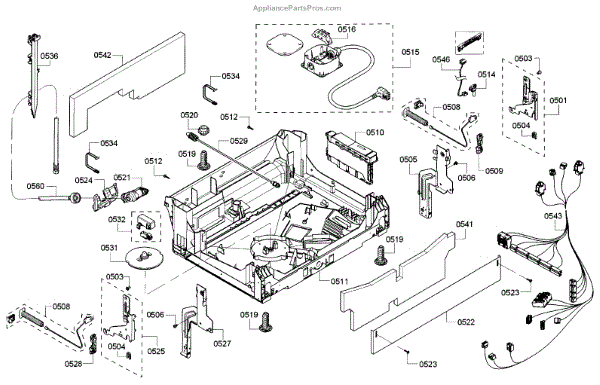 The Base Panel is an OEM part for Bosch dishwashers. It forms the floor structure inside the dishwasher tub on which racks and components sit. Symptoms of a problematic base panel include: