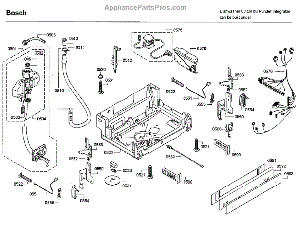 The Adapter is an OEM part for Bosch dishwashers. It is used to connect the dishwasher water inlet hose to the internal water supply component. Proper sealing and connections are critical for leak-free dishwasher operation. Causes of a bad hose adapter can include mineral buildup interfering with the seal, cracks developing from repeated heating and cooling cycles, or accidental damage during hose handling. Symptoms of a bad hose adapter include: