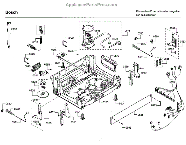 The Base Panel is an OEM part for Bosch dishwashers. It forms the floor structure inside the dishwasher tub on which racks and components sit. Symptoms of a problematic base panel include: