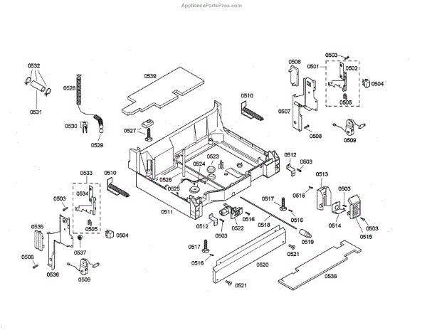 The leveling leg is responsible for ensuring the dishwasher remains level during operation. Proper leveling is crucial for preventing excess vibration or noise, as well as allowing the dishwasher door to align correctly.