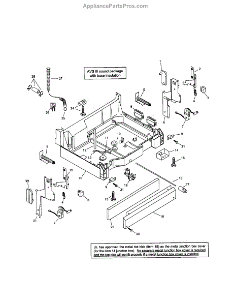 Causes of a failed screw can include wear and deterioration from constant vibrations during cycles, or physical damage if the toe kick panel is impacted.