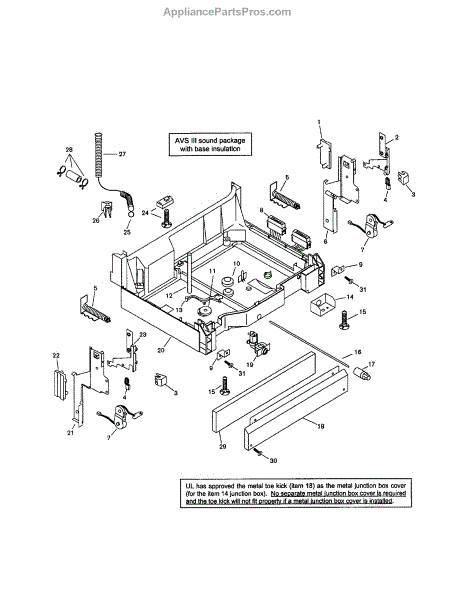 Causes of a failed screw can include wear and deterioration from constant vibrations during cycles, or physical damage if the toe kick panel is impacted.
