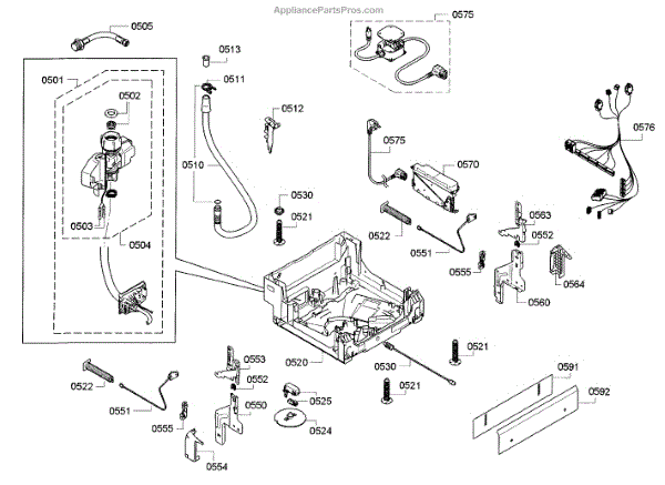 The Adapter is an OEM part for Bosch dishwashers. It is used to connect the dishwasher water inlet hose to the internal water supply component. Proper sealing and connections are critical for leak-free dishwasher operation. Causes of a bad hose adapter can include mineral buildup interfering with the seal, cracks developing from repeated heating and cooling cycles, or accidental damage during hose handling. Symptoms of a bad hose adapter include: