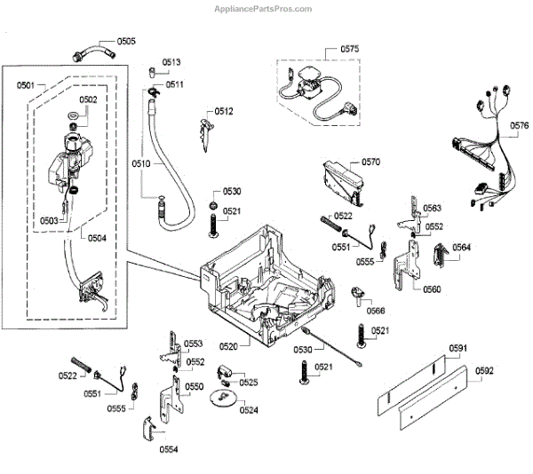 The Power Cord is an OEM replacement part for Bosch dishwashers. It supplies electrical current that allows the dishwasher to properly perform cycles. Located at the rear of the appliance, it plugs into a standard three-prong outlet. Causes for power cord replacement include cracking, splitting, or breaks in the protective insulation over time from repeated bending and stress. Symptoms of a faulty power cord include: