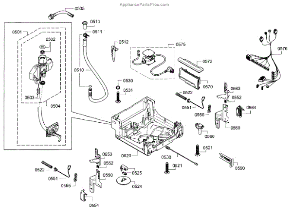 The Adapter is an OEM part for Bosch dishwashers. It is used to connect the dishwasher water inlet hose to the internal water supply component. Proper sealing and connections are critical for leak-free dishwasher operation. Causes of a bad hose adapter can include mineral buildup interfering with the seal, cracks developing from repeated heating and cooling cycles, or accidental damage during hose handling. Symptoms of a bad hose adapter include: