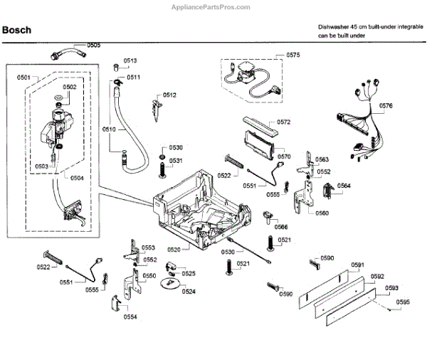 The Power Cord is an OEM replacement part for Bosch dishwashers. It supplies electrical current that allows the dishwasher to properly perform cycles. Located at the rear of the appliance, it plugs into a standard three-prong outlet. Causes for power cord replacement include cracking, splitting, or breaks in the protective insulation over time from repeated bending and stress. Symptoms of a faulty power cord include: