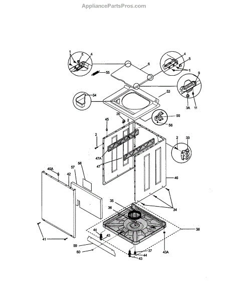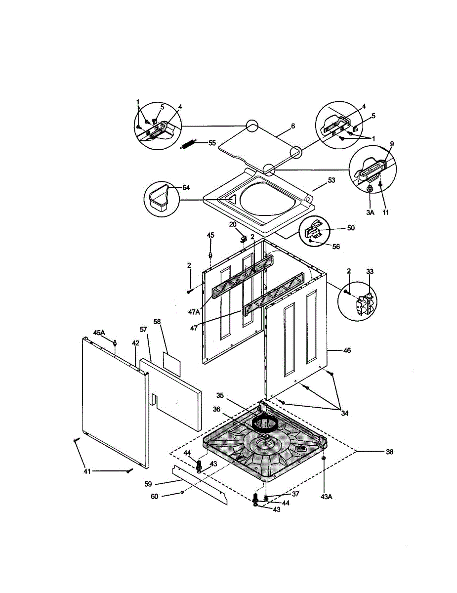 Top-loading washer lid for laundry center units. Replace if cracked, bent, or no longer closes securely. Installs with hinge screws at the rear.